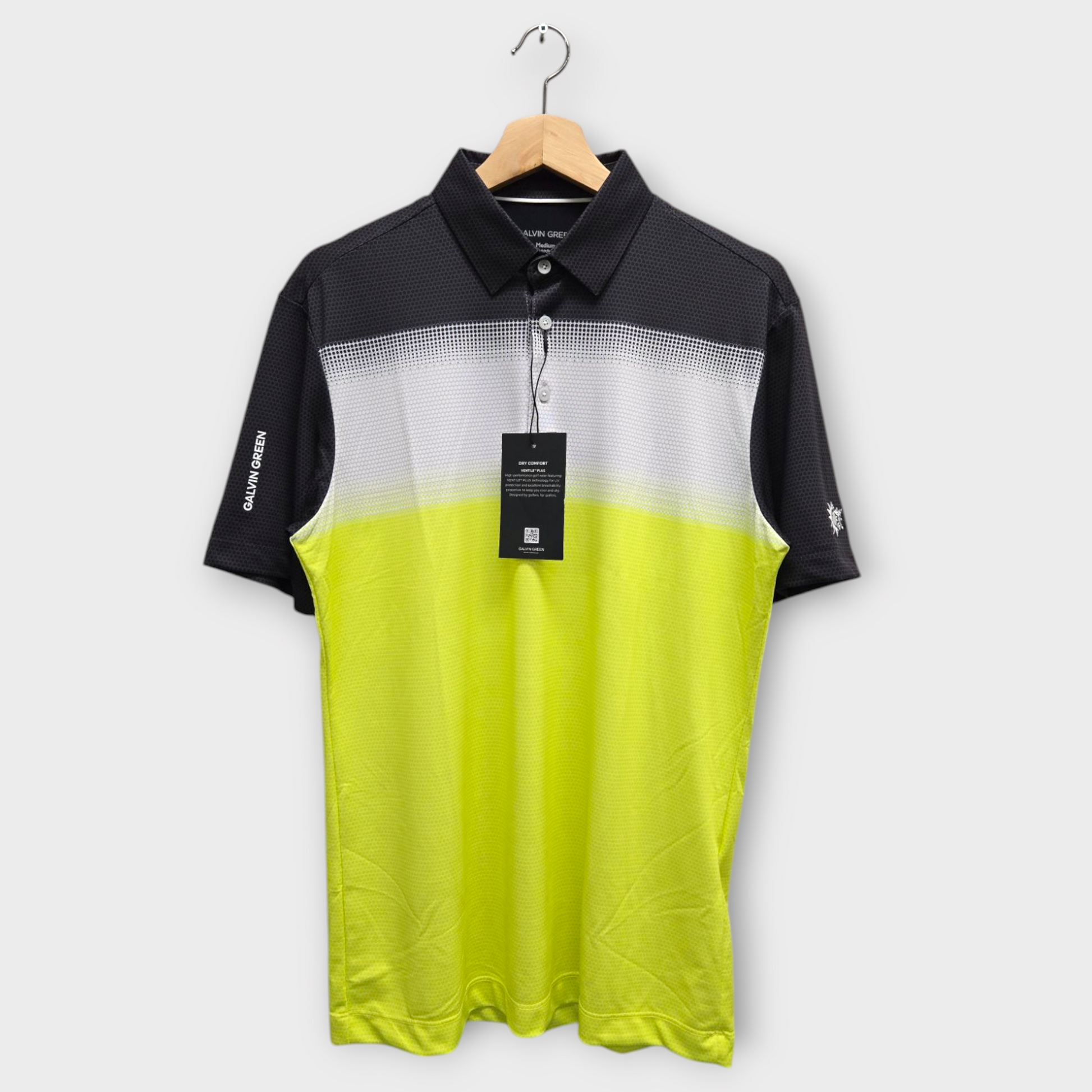 Galvin Green Golf Men's Polo Shirt Mo Pattern w/Logo (Black/Lime) - Medium