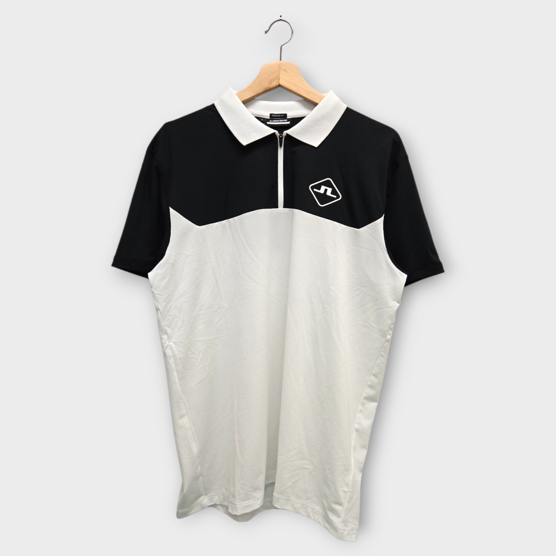 J.Lindeberg Golf Men's Polo Shirt Albin Regular Fit (White/Black) - Large